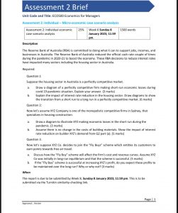 Assessment 2 Individual – Micro-economic Case Scenario Analysis