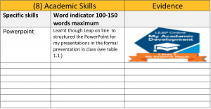 Develop an e-portfolio to demonstrate and reflect upon the development of your ICT and academic skills throughout the module. Use evidence including at least 15 LEAP online badges to show your progression, short reflection, action plan, other developmental evidence